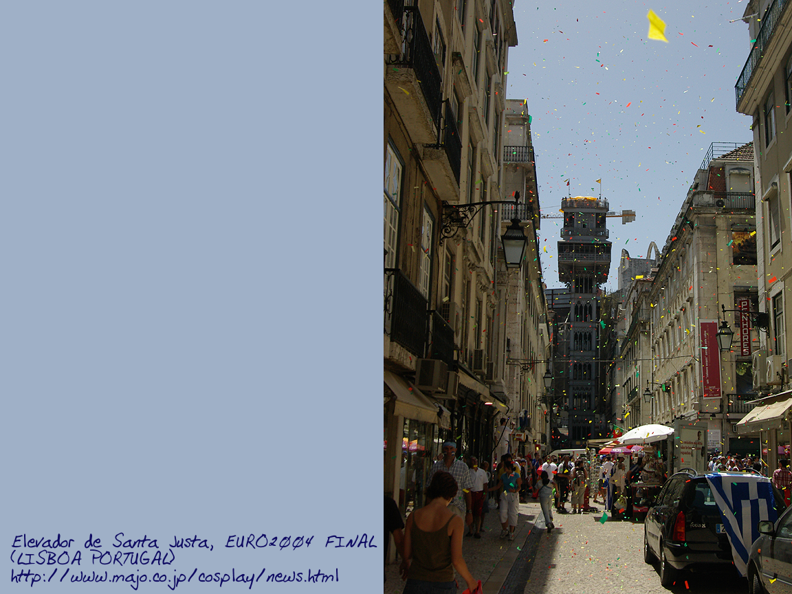 ジェスタのエレベータも紙吹雪に酔う 撮影場所:リスボン(BAIXA)、ポルトガル(PORTUGAL) EURO2004 Luz スタジアムとオフィシャルビールカー、撮影場所:ポルトガル(PORTUGAL)、リスボン(LISBOA:LISBON)