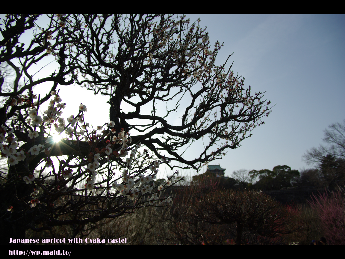 白梅と大阪城( Japanese apricot with Osaka castel ) 撮影場所:大阪城 、梅林 大阪城の白梅( Japanese apricot. ume ) 撮影場所:大阪城 、梅林 梅林(紅梅)より大阪城を望む( Japanese apricot with Osaka castel ) 撮影場所:大阪城 、梅林