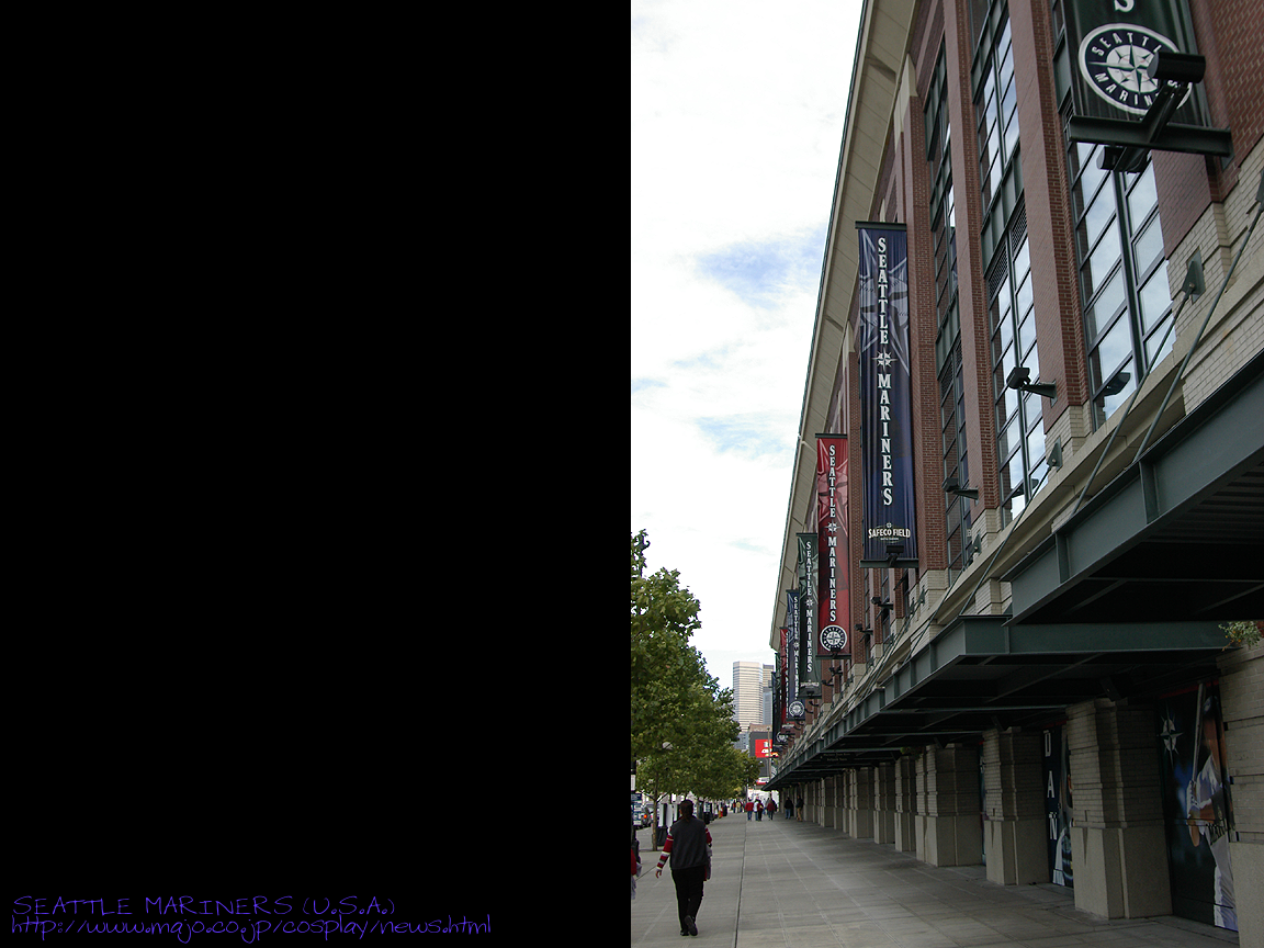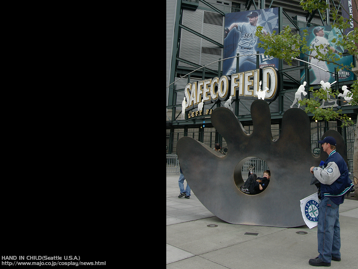 セーフコフィールド外側 撮影場所:シアトル、アメリカ セーフコフィールドのマリナーズ側ベンチ 撮影場所:シアトル、アメリカ セーフコフィールドの手に入って遊ぶ子供 撮影場所:シアトル、アメリカ