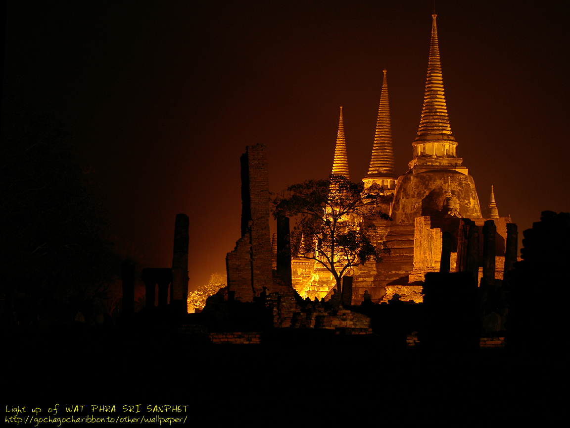 ワット・プラ・スリ・サンペット (WAT PHRA SRI SANPHET)のライトアップ 撮影場所:アユタヤ、タイ ロイヤル王宮( Royal Grand Palace )の猿達 撮影場所:バンコク、タイ ロイヤル王宮( Royal Grand Palace )の寺を守るガルーダ 撮影場所:バンコク、タイ ワット・ヤイ・チャイ・モンコン(WAT YAI CHAI MONGKON)の寝ころぶ仏陀 撮影場所:アユタヤ、タイ